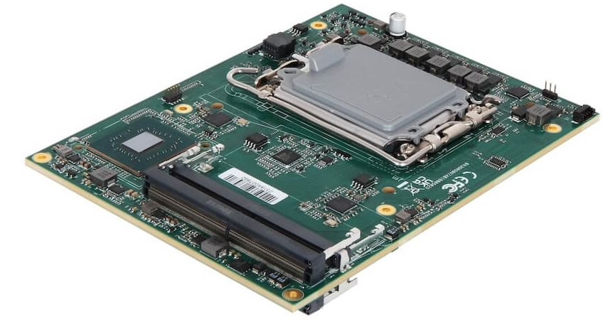 COM-HPC® Client Type, Size C 14th/13th Gen Intel® Core™ Processors (Raptor Lake-S Refresh/Raptor Lake-S), Intel® Pentium® Gold Processor Series and Intel® Celeron® Processor G6900 Series featuring Intel® 7 lithography Up to 8x Performance-cores (P-cores) + 16x Efficient-cores (E-cores), and up to 32x graphics execution units 4x DDR5 ECC/non-ECC 3600 MT/s up to 192GB 1x PCIe Gen5 x16, 2x PCIe Gen4 x4, 3x PCIe Gen3 x4, 6x PCIe Gen3 x1 2x 2.5GbE via Intel® Ethernet Controller I226 series 4x USB3.2 Gen2x2, 8x USB 2.0 Support multimedia interface: - 3x DDI (DP), 1x eDP for display - I²S for audio |